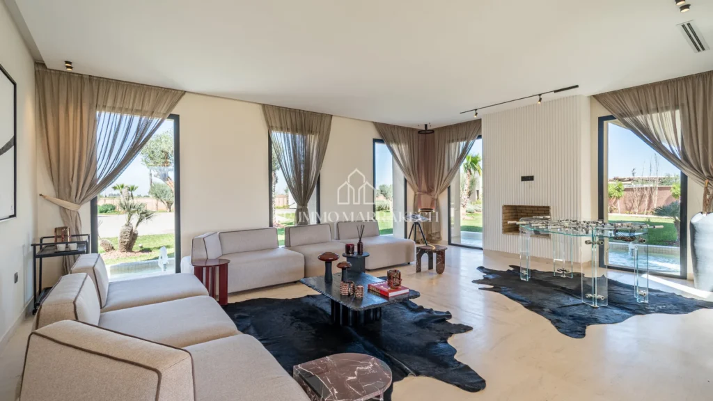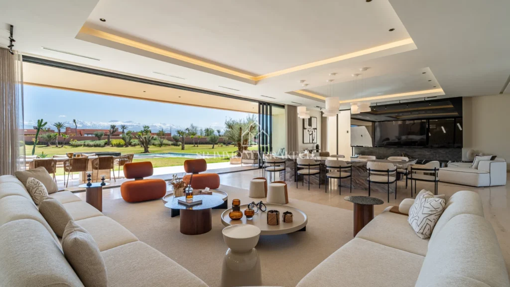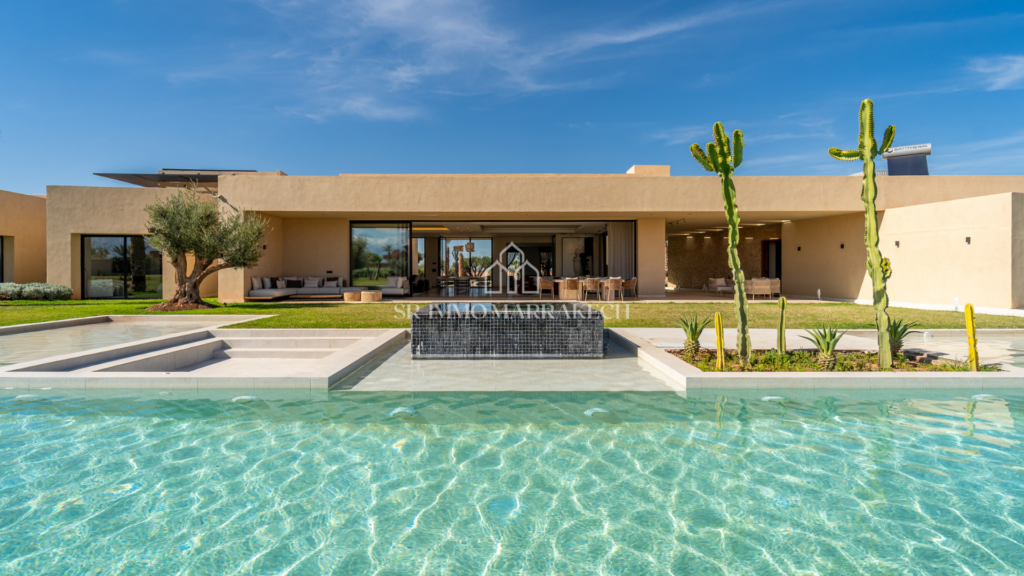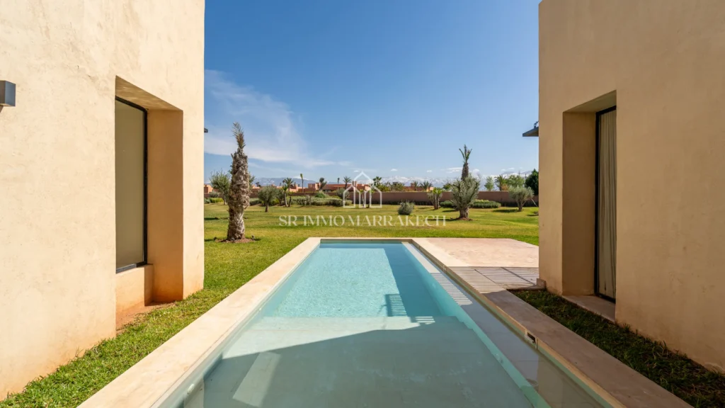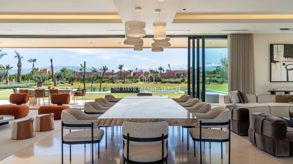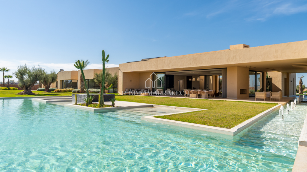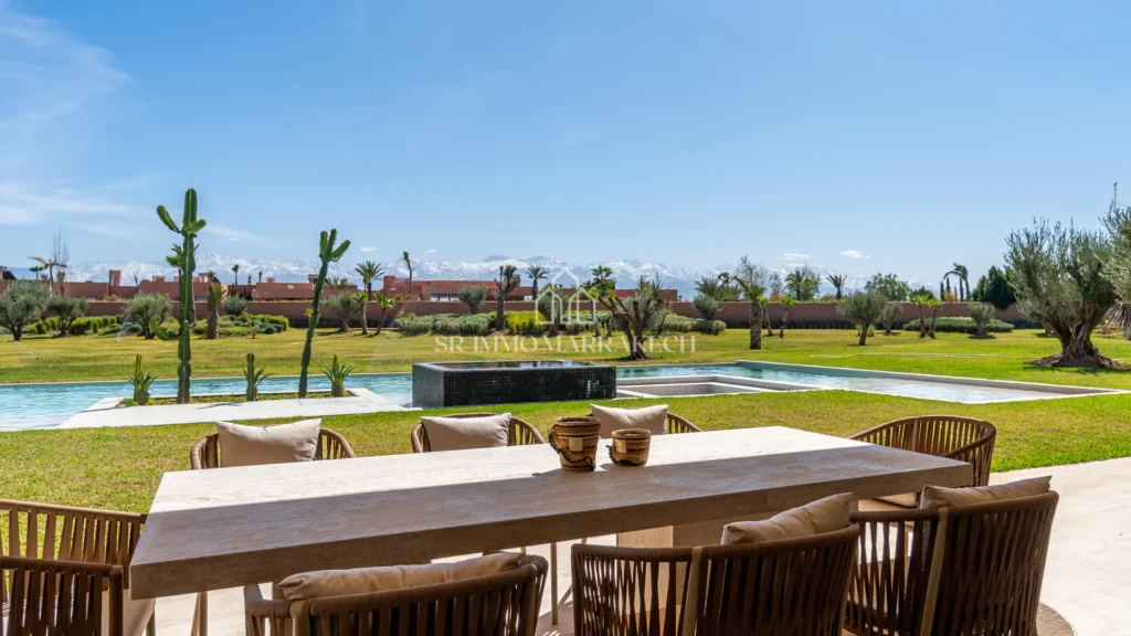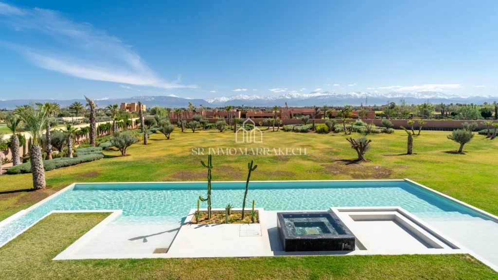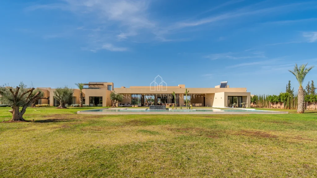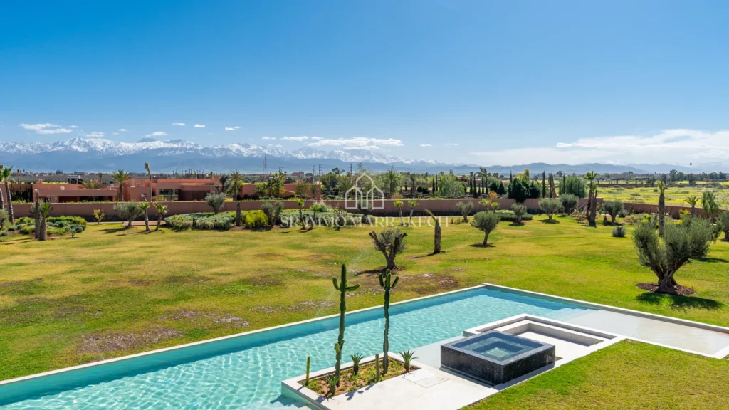 Somptueuse villa contemporaine de plain-pied nichée sur un terrain d’un hectare avec vue imprenable sur les montagnes de l’Atlas , à seulement 20 minutes du centre-ville de Marrakech. Sa conception moderne et ses volumes généreux offrent une atmosphère lumineuse et élégante.