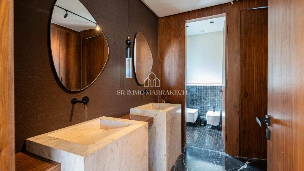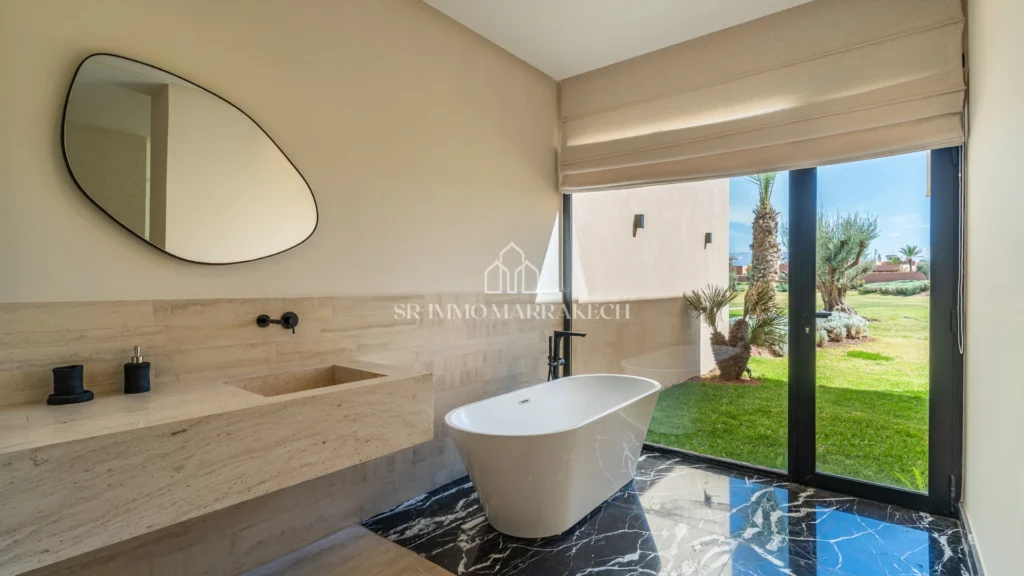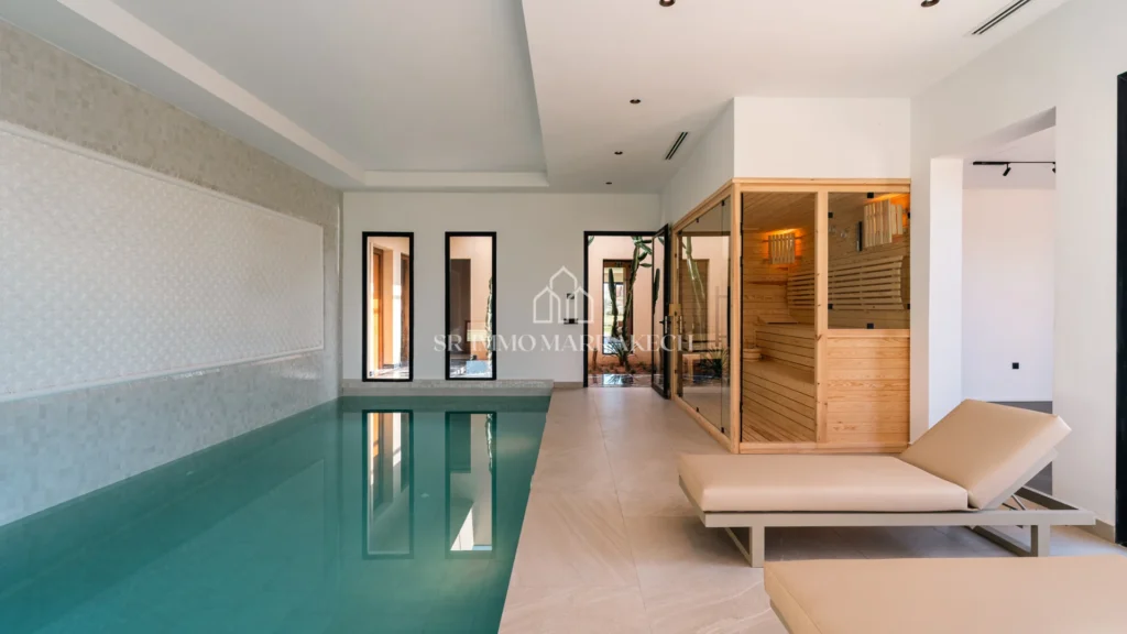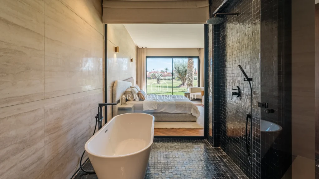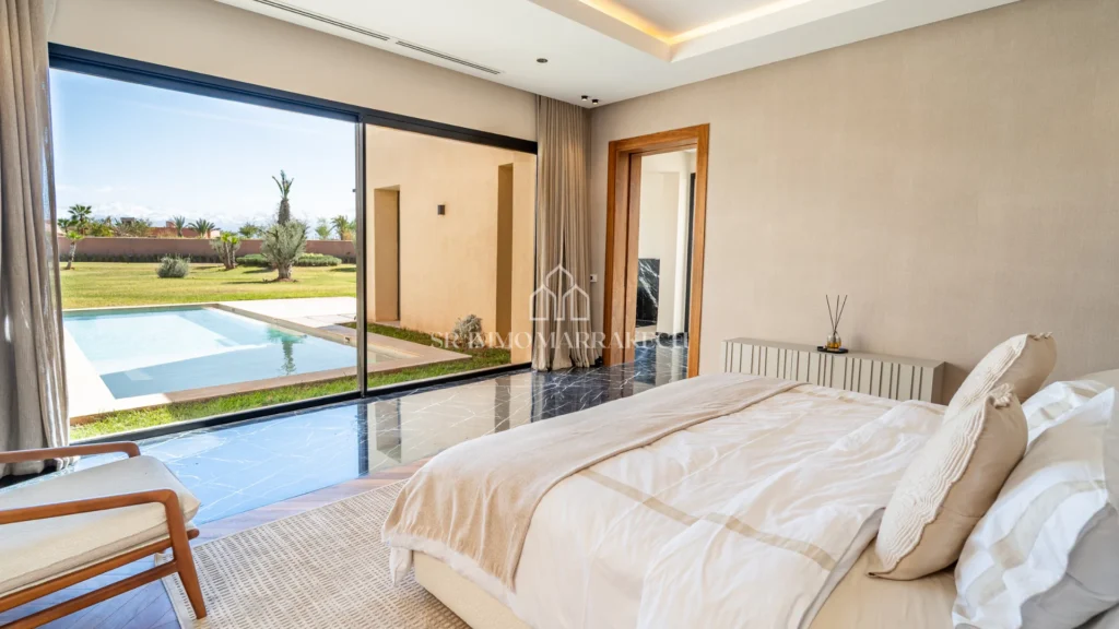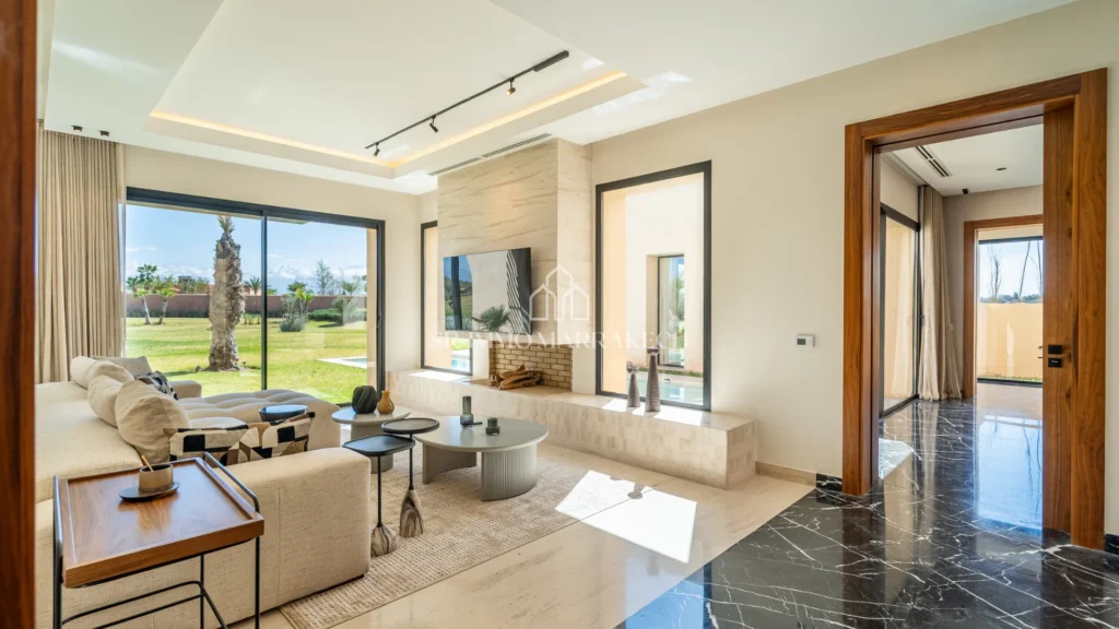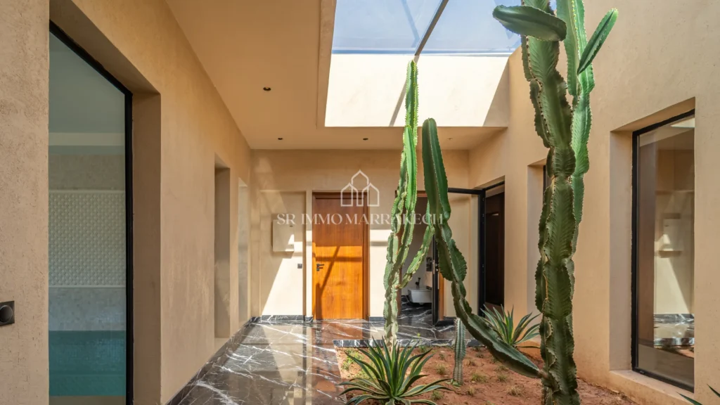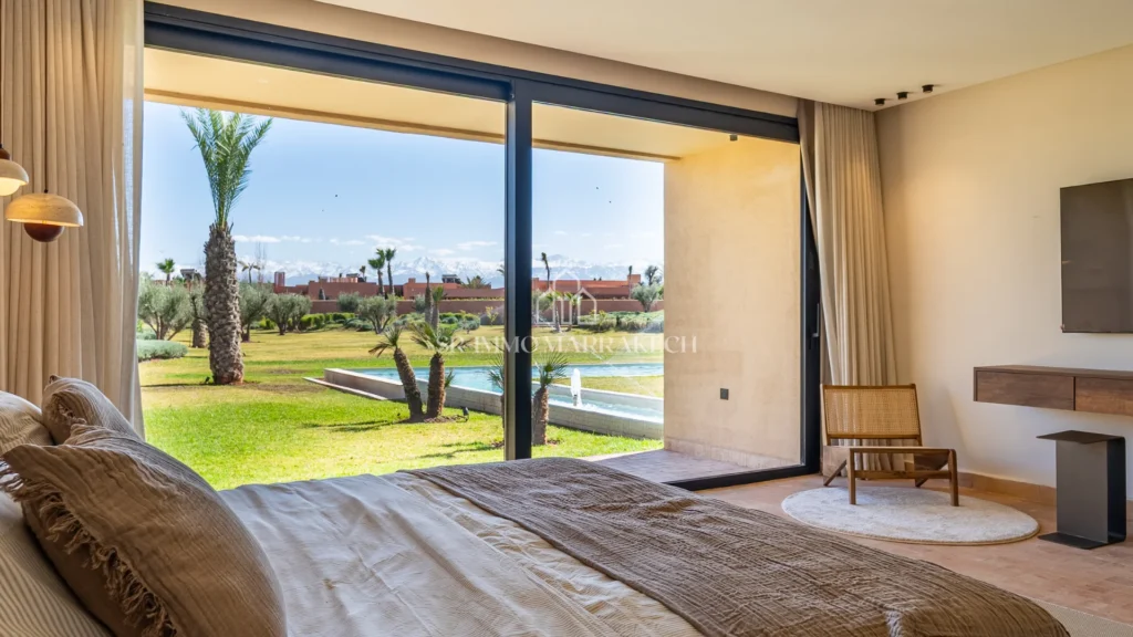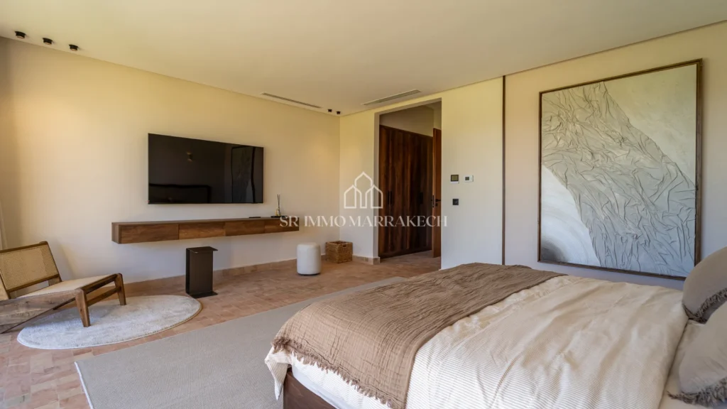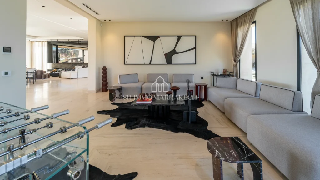 Somptueuse villa contemporaine de plain-pied nichée sur un terrain d’un hectare avec vue imprenable sur les montagnes de l’Atlas , à seulement 20 minutes du centre-ville de Marrakech. Sa conception moderne et ses volumes généreux offrent une atmosphère lumineuse et élégante.