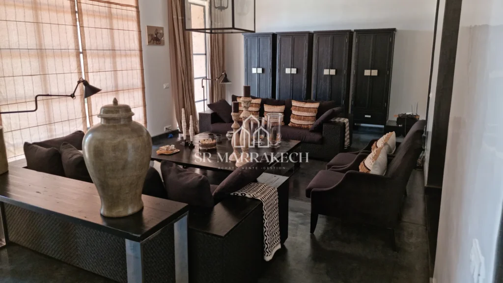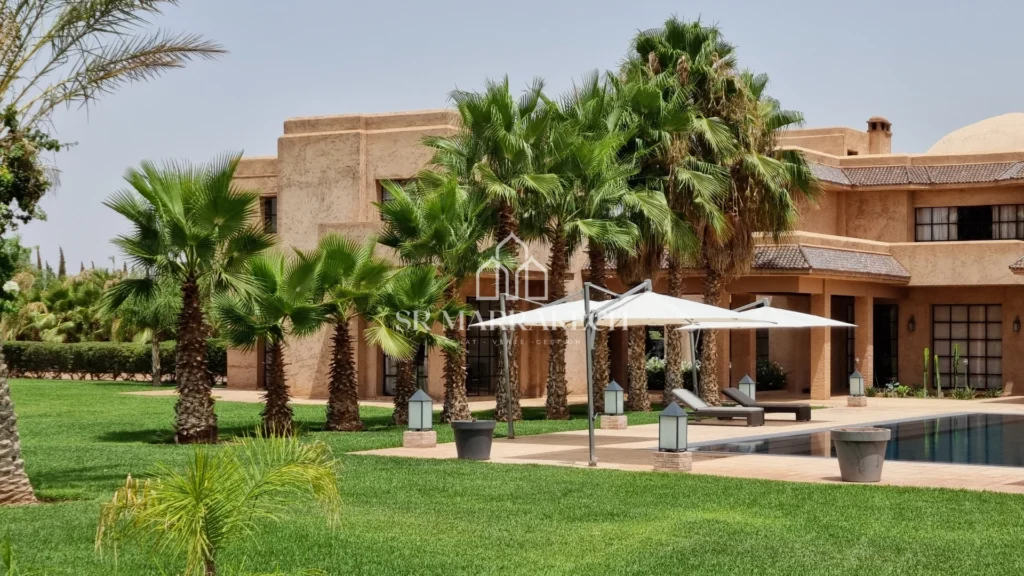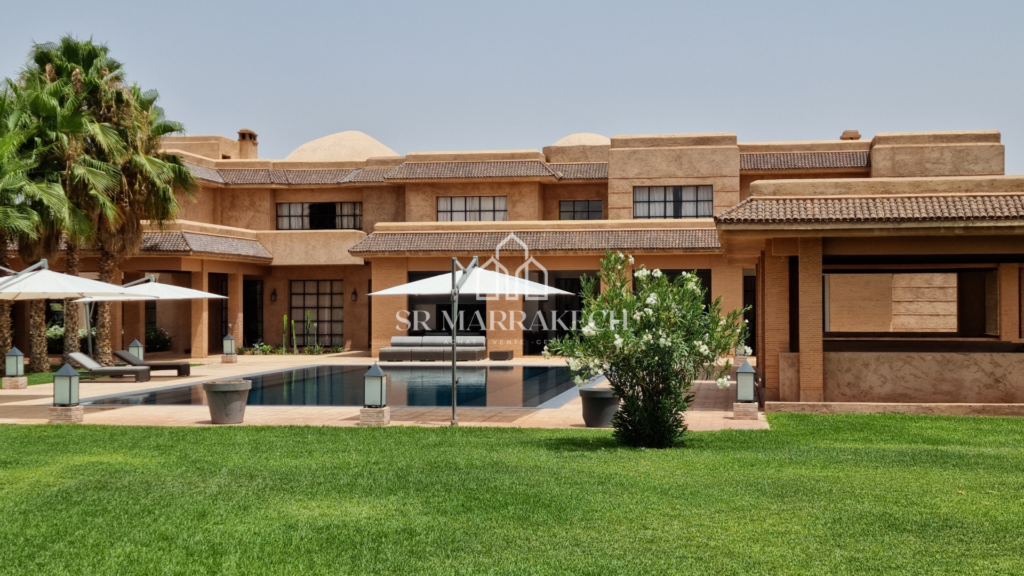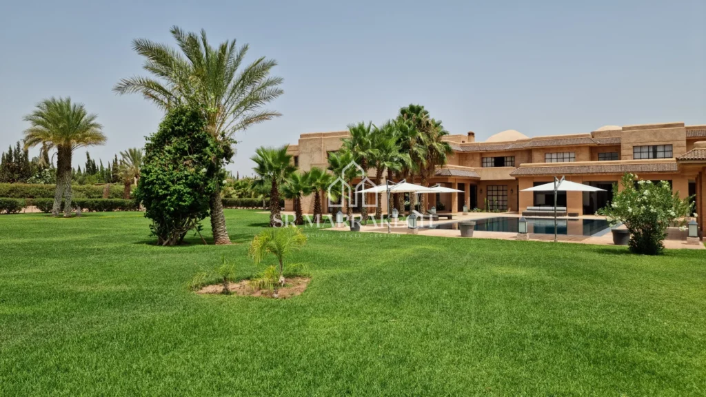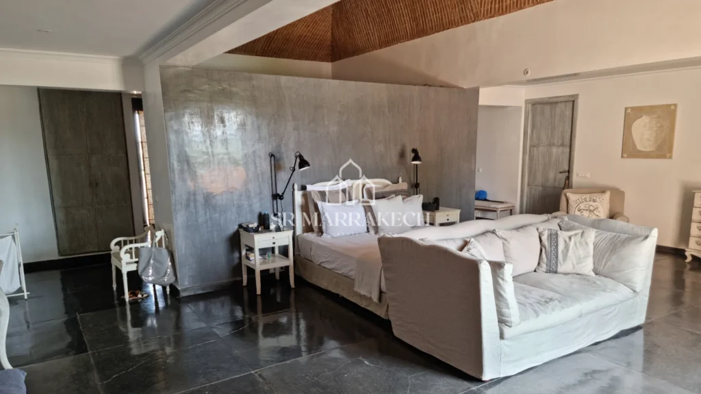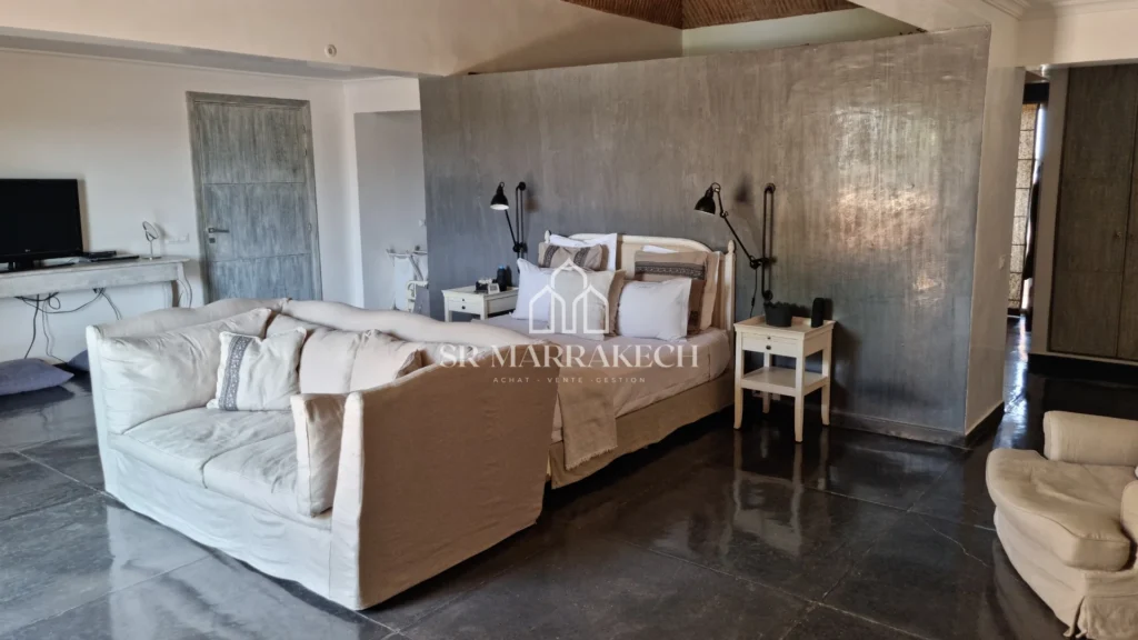 À seulement 15 minutes du centre-ville de Marrakech, cette somptueuse propriété située sur la route d’Amizmiz offre un cadre de vie rare, où luxe, espace et intimité se conjuguent harmonieusement. Implantée sur un terrain de 2 hectares, la villa se distingue par ses volumes spectaculaires, sa luminosité naturelle et la qualité remarquable de ses prestations.