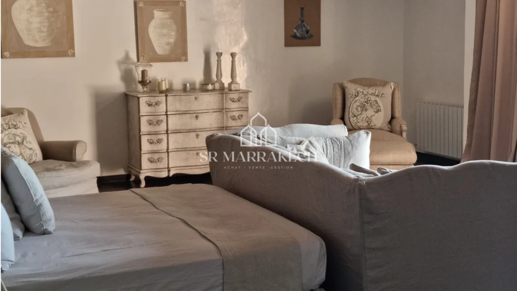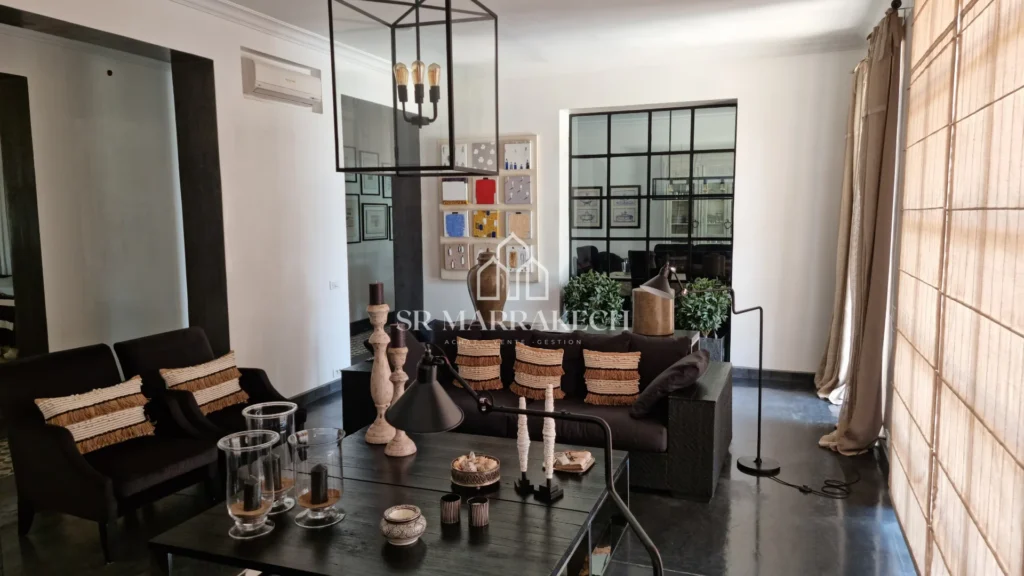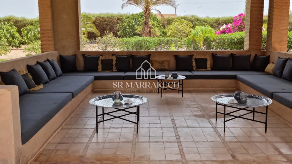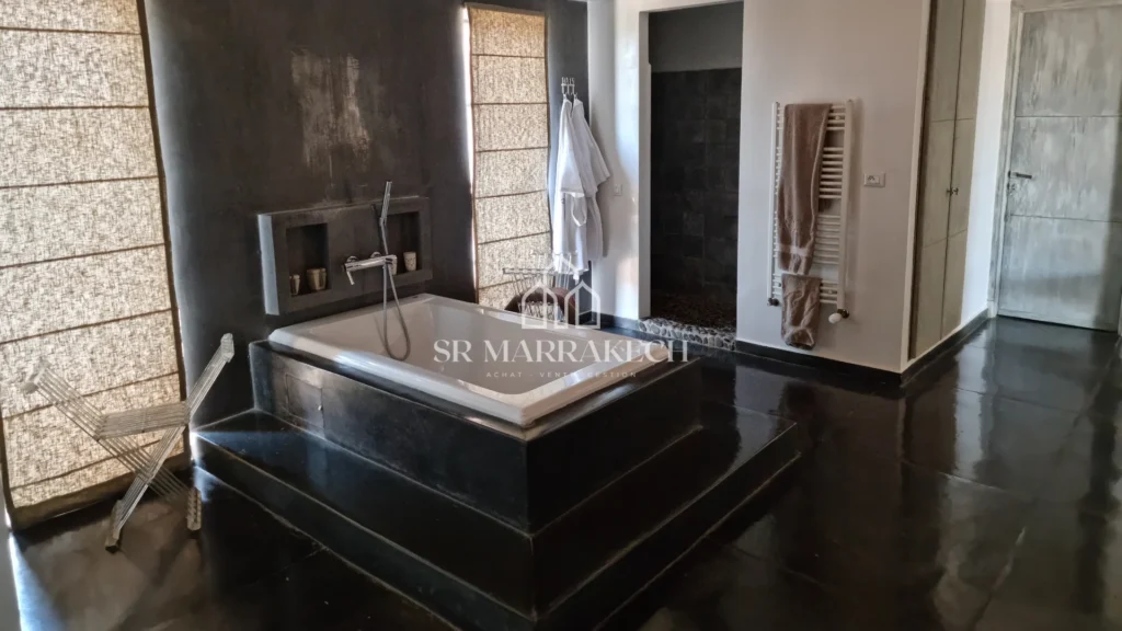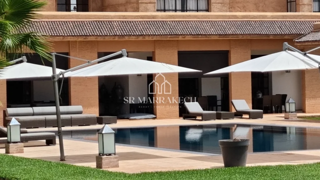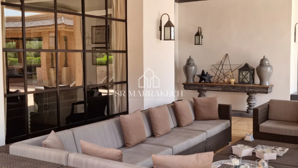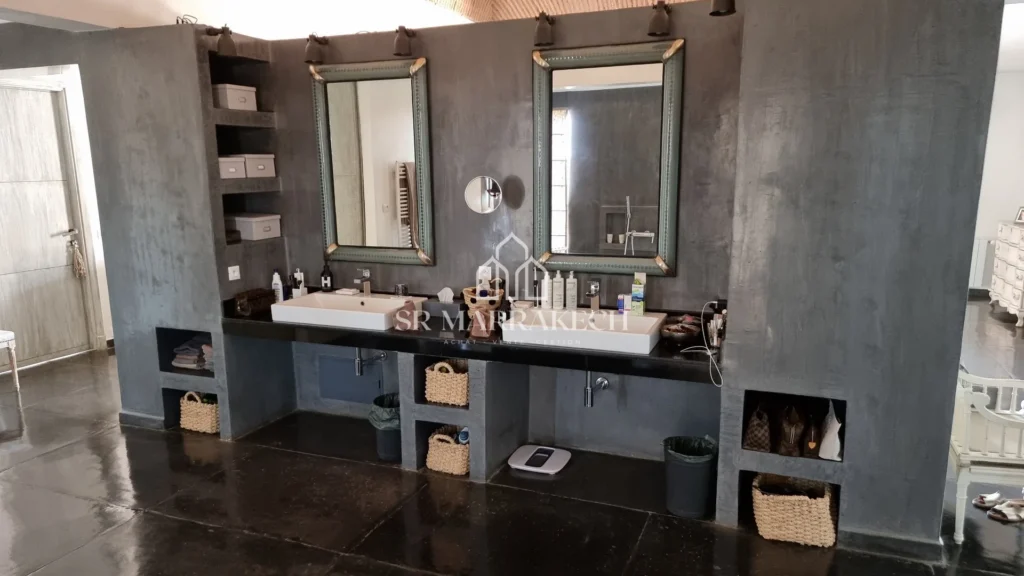 À seulement 15 minutes du centre-ville de Marrakech, cette somptueuse propriété située sur la route d’Amizmiz offre un cadre de vie rare, où luxe, espace et intimité se conjuguent harmonieusement. Implantée sur un terrain de 2 hectares, la villa se distingue par ses volumes spectaculaires, sa luminosité naturelle et la qualité remarquable de ses prestations.